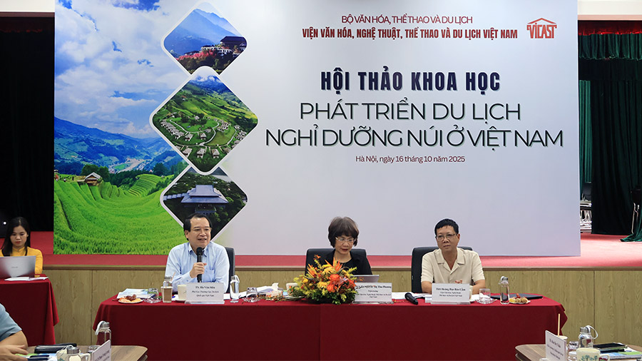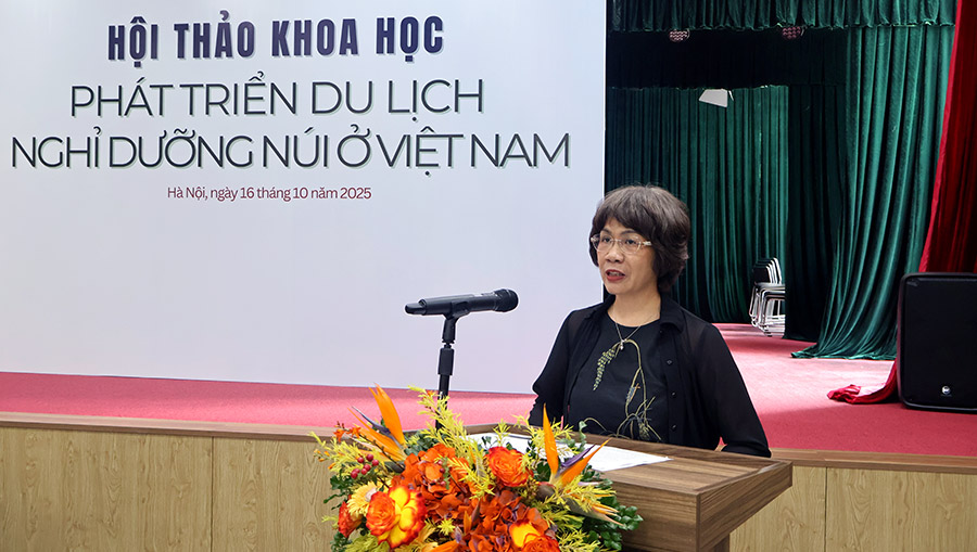 Phát biểu khai mạc, PGS.TS. Nguyễn Thị Thu Phương - Viện trưởng Viện VHNTTTDLVN nhận định, với cảnh quan thiên nhiên hùng vĩ, khí hậu trong lành, bản sắc văn hóa độc đáo của các cộng đồng dân tộc vùng cao, Việt Nam có đầy đủ điều kiện để phát triển loại hình du lịch vừa đáp ứng nhu cầu chăm sóc sức khỏe, nghỉ dưỡng, vừa nuôi dưỡng tinh thần và kết nối văn hóa. Du lịch nghỉ dưỡng núi đang mở ra nhiều cơ hội, nhưng để trở thành động lực phát triển vùng và quốc gia, chúng ta cần nhìn nhận rõ những yêu cầu mới. Phát triển nghỉ dưỡng núi không thể tách rời bảo tồn tài nguyên tự nhiên, văn hóa bản địa và đảm bảo an toàn. Điều này đòi hỏi tư duy quy hoạch tích hợp, cách tiếp cận liên ngành và sự tham gia chủ động của cộng đồng địa phương.