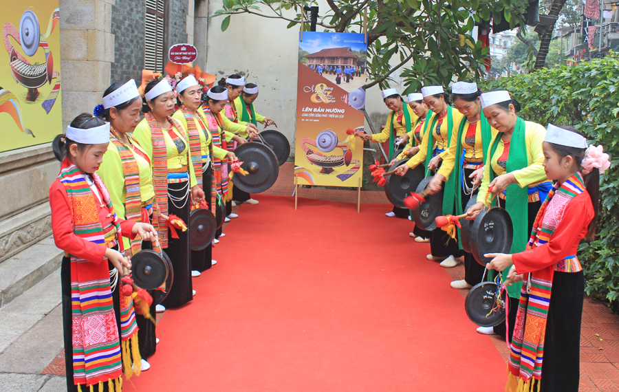 Bà Bùi Thị Tẻo - Chủ nhiệm Câu lạc bộ “Giữ gìn bản sắc văn hóa dân tộc Mường” (xã Đại Đồng, tỉnh Phú Thọ) cho biết, Câu lạc bộ “Giữ gìn bản sắc văn hóa dân tộc Mường” được thành lập tháng 9/2022. Câu lạc bộ quan tâm giữ gìn về cồng chiêng, múa ném còn, đánh mảng, đi cà kheo... “Chúng tôi rất phấn khởi khi được tham gia chương trình do Trung tâm Thông tin du lịch (Cục Du lịch Quốc gia Việt Nam) tổ chức; được giao lưu, chia sẻ với khán giả về hoạt động bảo tồn văn hóa Mường” - bà Bùi Thị Tẻo bày tỏ.
