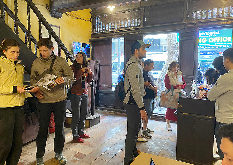Du khách nước ngoài trải nghiệm Hệ thống vé điện tử tại Ngôi nhà Di sản số 87 phố Mã Mây