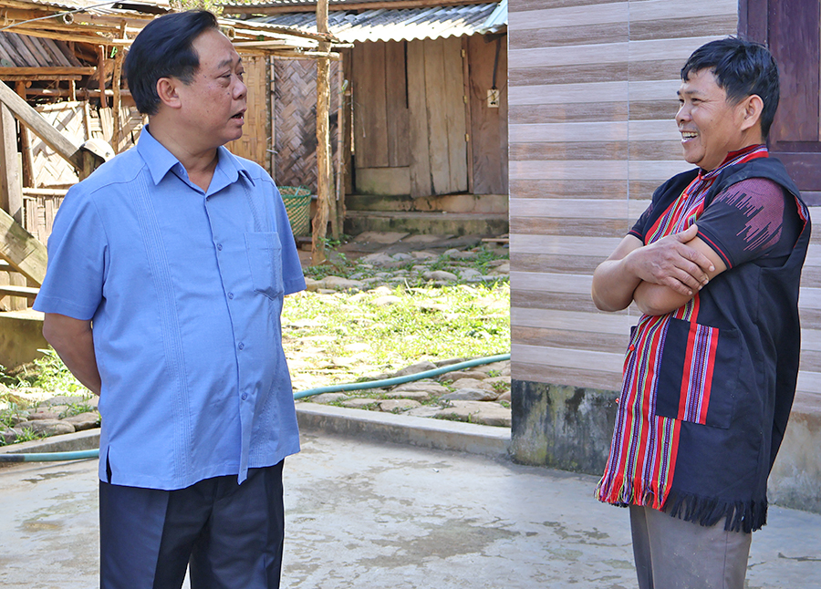 Phó Cục trưởng Phạm Văn Thủy làm việc tại bản Rum Ho (Ảnh: TITC)