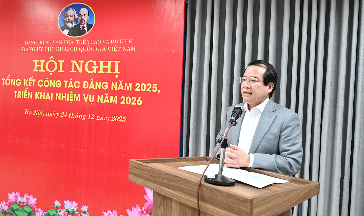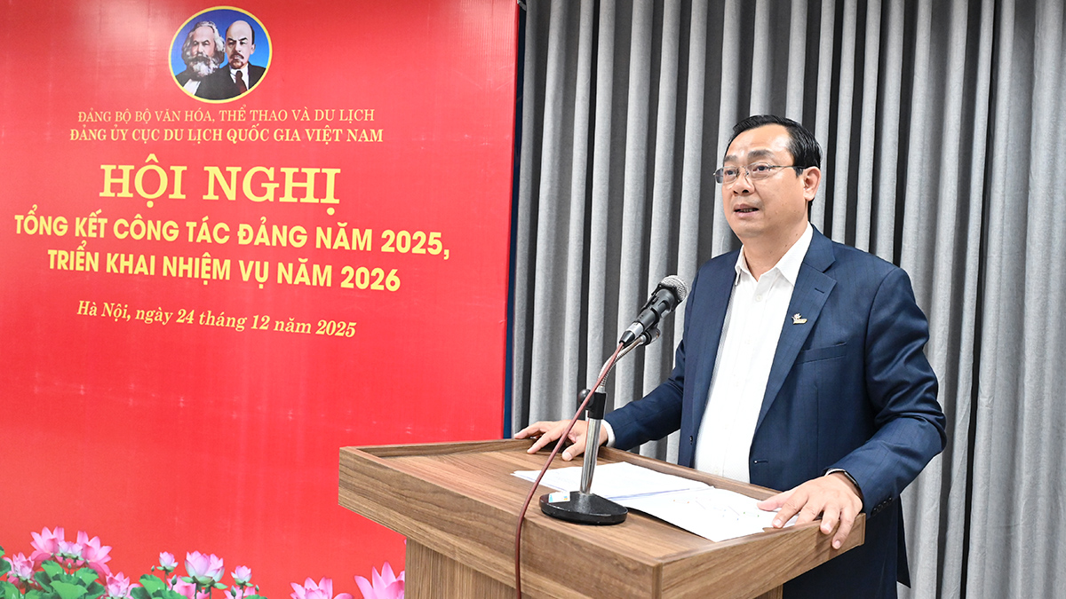 Phát biểu chỉ đạo tại hội nghị, đồng chí Nguyễn Tuấn Linh, Phó Bí thư chuyên trách Đảng ủy Bộ VHTTDL ghi nhận và đánh giá cao những thành tựu Đảng bộ Cục Du lịch Quốc gia Việt Nam đạt được trong năm 2025. Bước sang năm 2026, Đảng ủy Cục cần đẩy mạnh công tác tuyên truyền, quán triệt các văn bản, nghị quyết của Trung ương, đặc biệt là Nghị quyết Đại hội Đảng lần thứ XIV và các nghị quyết mới về phát triển văn hóa.