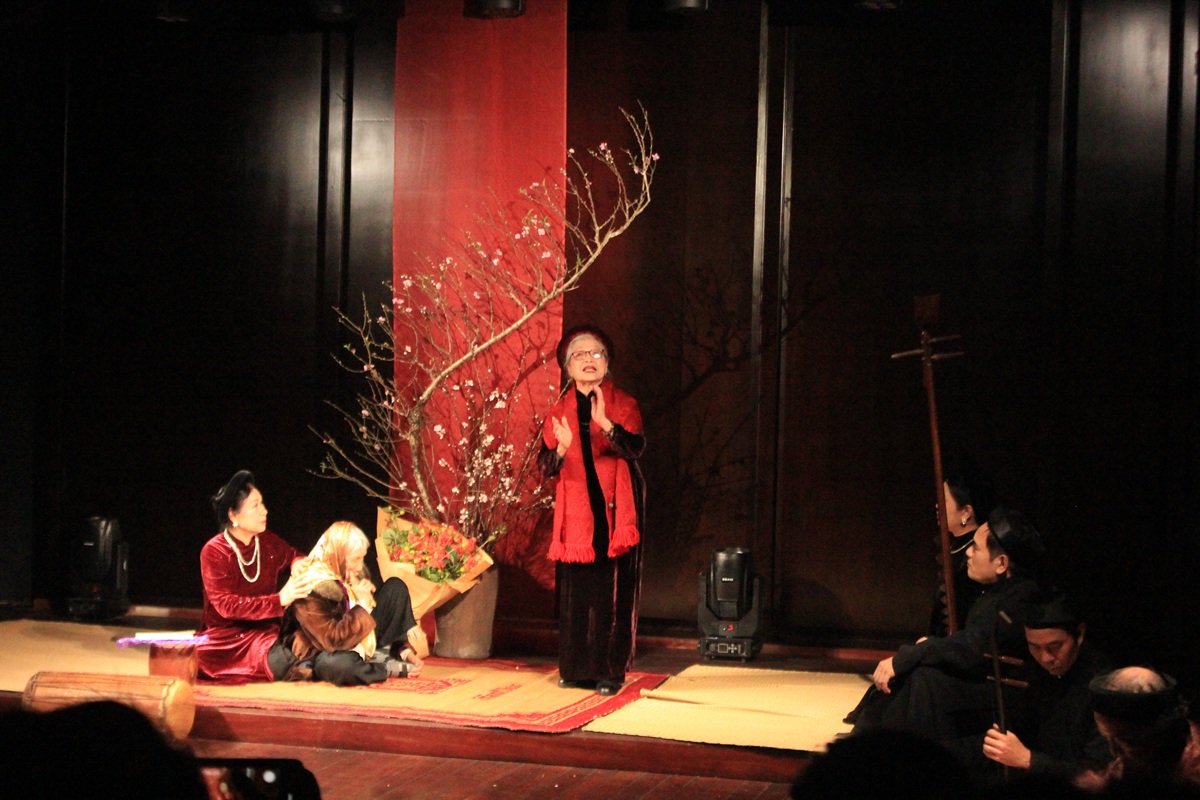 NSND Mẫn Thu trình diễn tuồng cổ. Ảnh: TITC
