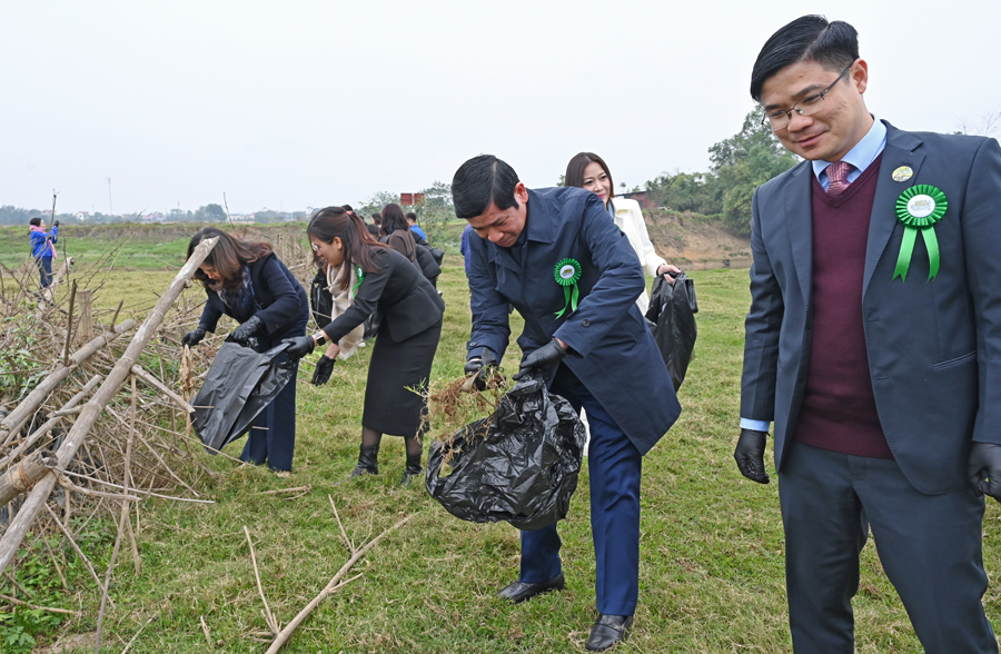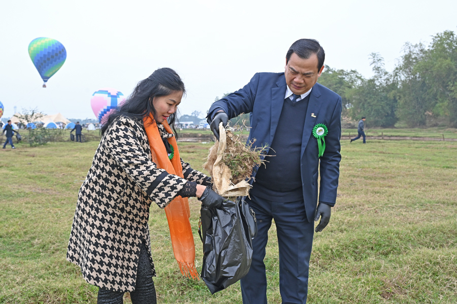 Lãnh đạo Bộ VHTTDL và Cục Du lịch Quốc gia Việt Nam tham gia hoạt động nhặt rác vì môi trường xanh tại chương trình. Ảnh: TITC