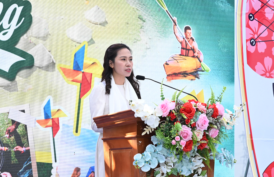 Chủ tịch UBND xã Đa Phúc Đỗ Thu Nga phát biểu tại chương trình. Ảnh: TITC
