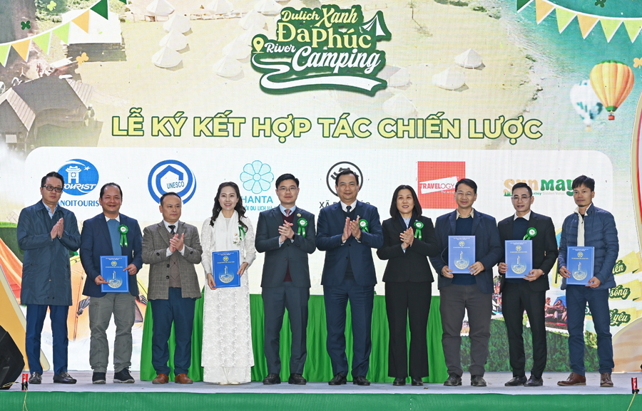 Cục trưởng Cục Du lịch Quốc gia Việt Nam Nguyễn Trùng Khánh chứng kiến các doanh nghiệp ký kết hợp tác với xã Đa Phúc. Ảnh: TITC