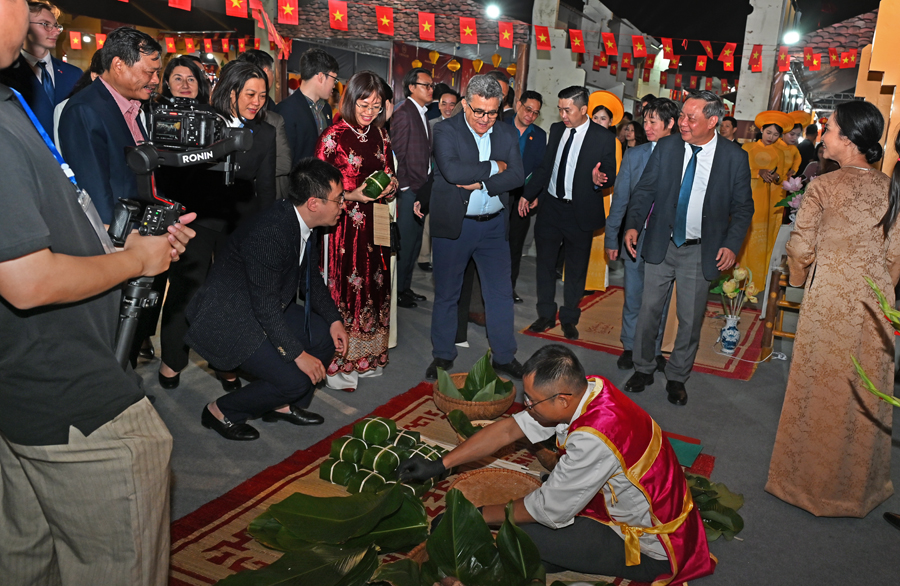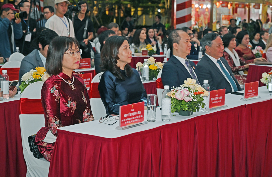 Phó Cục trưởng Cục Du lịch Quốc gia Việt Nam Nguyễn Thị Hoa Mai cùng các đại biểu tham quan không gian Happy Tết 2026. Ảnh: TITC