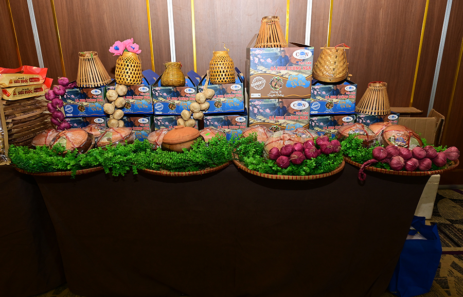Các gian hàng giới thiệu sản phẩm du lịch và đặc sản địa phương bên lề Hội nghị (Ảnh: TITC)