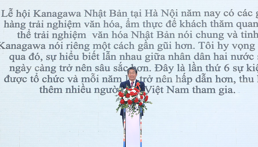 Phát biểu khai mạc Lễ hội, Thống đốc tỉnh Kanagawa Kuroiwa Yuji gửi lời cảm ơn chân thành tới TP. Hà Nội đã cùng phối hợp tổ chức sự kiện, giúp tỉnh Kanagawa có cơ hội quảng bá văn hóa tại Việt Nam.