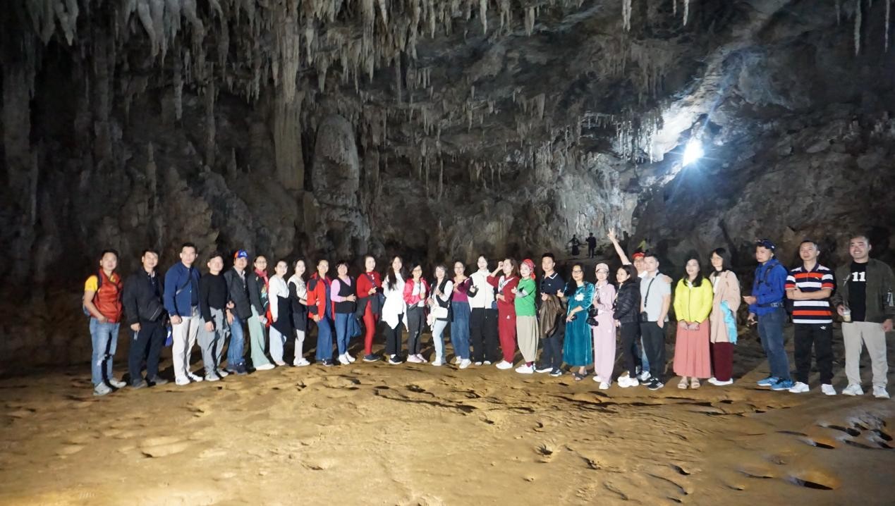 Tiếp nối hành trình, đoàn đến tham quan Khu du lịch động Pu Sam Cáp (phường Đoàn Kết). Đây là quần thể hang động nổi tiếng nằm cách trung tâm thành phố Lai Châu khoảng 6km, được mệnh danh là “Tây Bắc đệ nhất động”. Nằm ở độ cao gần 1.300m so với mực nước biển, Pu Sam Cáp gồm ba hang động lớn với nhiều ngóc ngách huyền ảo, hệ thống nhũ đá, măng đá có hình thù kỳ thú gắn với nhiều truyền thuyết của người Thái và người Mông. Ngoài giá trị cảnh quan, khu vực Pu Sam Cáp còn được đánh giá cao về tiềm năng phát triển du lịch sinh thái, khám phá kết hợp tìm hiểu địa chất, địa mạo. Hiện nay, cơ sở hạ tầng phục vụ du khách tại Pu Sam Cáp đang được hoàn thiện dần để có thể đáp ứng nhu cầu khám phá của du khách trong thời gian tới khi đến với Lai Châu.