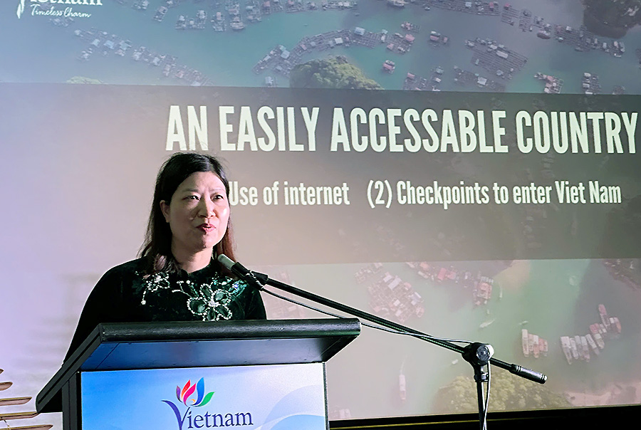 Bà Lê Thùy Trang, Tham tán Đại sứ quán Việt Nam tại Úc gửi lời cảm ơn tới Cục Du lịch Quốc gia Việt Nam đã chủ trì tổ chức sự kiện nhằm quảng bá Việt Nam như một điểm đến hàng đầu trên thế giới. “Quan hệ Việt Nam - Úc đang ở giai đoạn phát triển mạnh mẽ nhất, đặc biệt sau khi hai nước thiết lập Đối tác Chiến lược Toàn diện vào năm 2024. Kế hoạch hành động Đối tác Chiến lược Toàn diện 2024 - 2027 mở ra khuôn khổ hợp tác sâu rộng trong thương mại, đầu tư, giao lưu nhân dân và du lịch”, Bà Lê Thùy Trang nhấn mạnh.