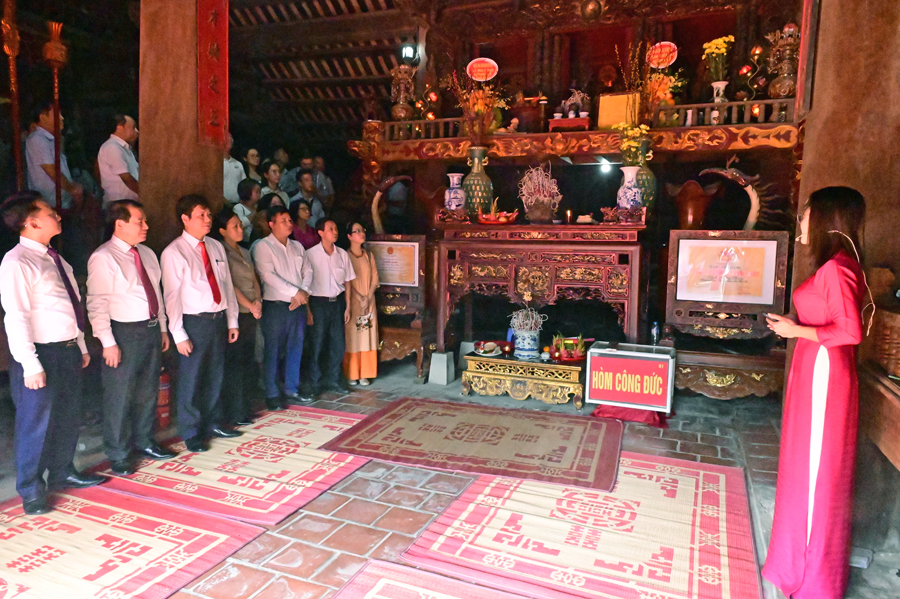 Các đại biểu nghe giới thiệu về di tích quốc gia đặc biệt đình Tường Phiêu
