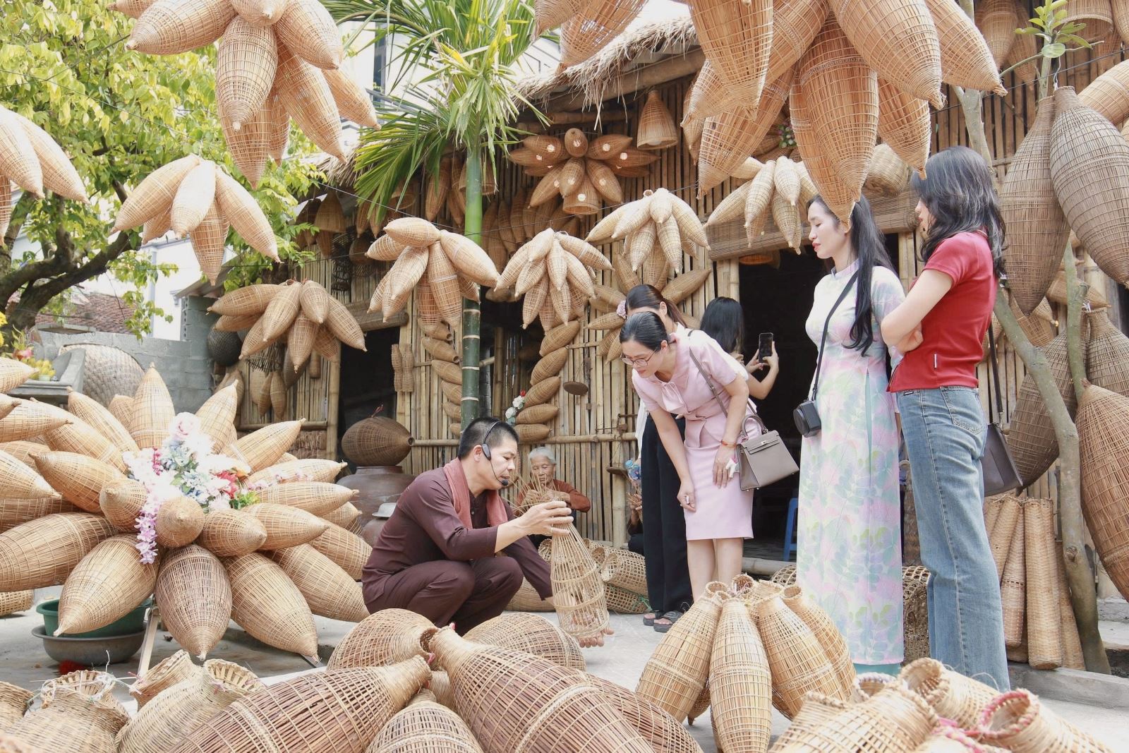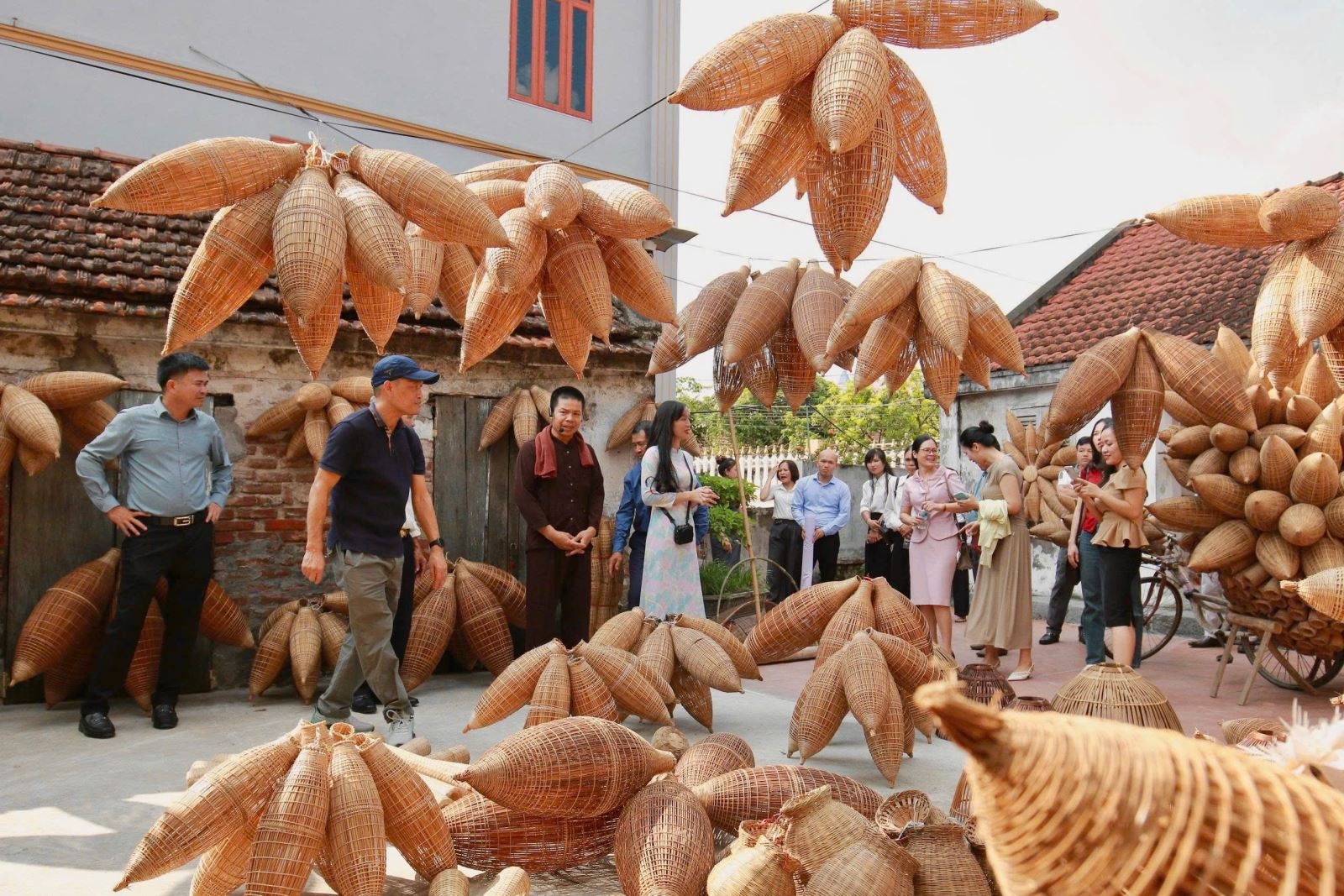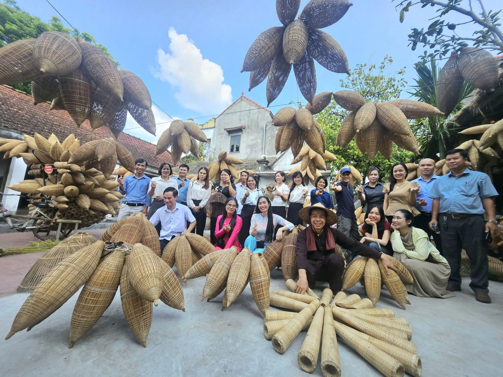 Đoàn khảo sát tại làng nghề đan đó truyền thống (xã Tân Hưng, tỉnh Hưng Yên)