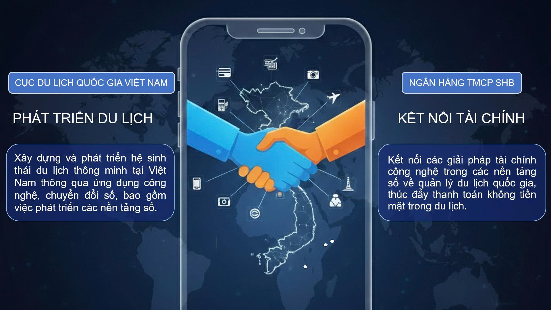Một điểm nhấn trong chương trình hợp tác là hai bên sẽ ra mắt giải pháp tài chính - du lịch toàn diện, tích hợp trực tiếp trên ứng dụng “Quản trị và kinh doanh du lịch” hỗ trợ đơn vị cung cấp dịch vụ du lịch, hướng dẫn viên và ứng dụng “Du lịch Việt Nam - Vietnam Travel” hỗ trợ du khách tìm hiểu thông tin, đặt phòng, đặt tour, vé máy bay, vé tàu hỏa, vé tham quan, mua sắm.... Đây là các ứng dụng cốt lõi nằm trong hệ sinh thái du lịch thông minh của Cục Du lịch Quốc gia Việt Nam, với việc kết hợp giải pháp tài chính số từ Ngân hàng SHB cho phép người dùng tiếp cận thông tin du lịch và thực hiện các giao dịch trên một nền tảng thống nhất.