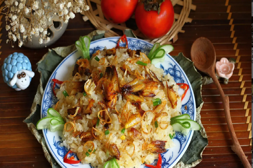Nguyên liệu làm xôi cá rô đồng rất quen thuộc: nếp cái hoa vàng, cá rô đồng, hành khô, gừng, nước mắm, muối hạt, mỡ gà, hạt tiêu và rau răm – những thứ gắn liền với bếp Việt nhưng khi kết hợp lại tạo nên nét tinh tế rất riêng.