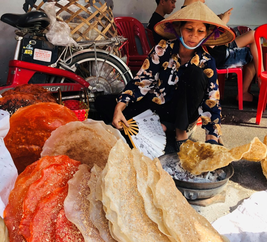 Bánh được phơi ngay ngắn trên phên tre, hứng ánh nắng vàng, đủ thời gian để bánh se mặt nhưng vẫn dẻo, người thợ nhanh tay gỡ bánh cho khỏi dính vào phên, rồi lật bánh để phơi tiếp cho đến khô kiệt, bánh mới giòn. Bánh khô hẳn sẽ được bảo quản trong túi nilon buộc chặt, để nơi khô ráo.