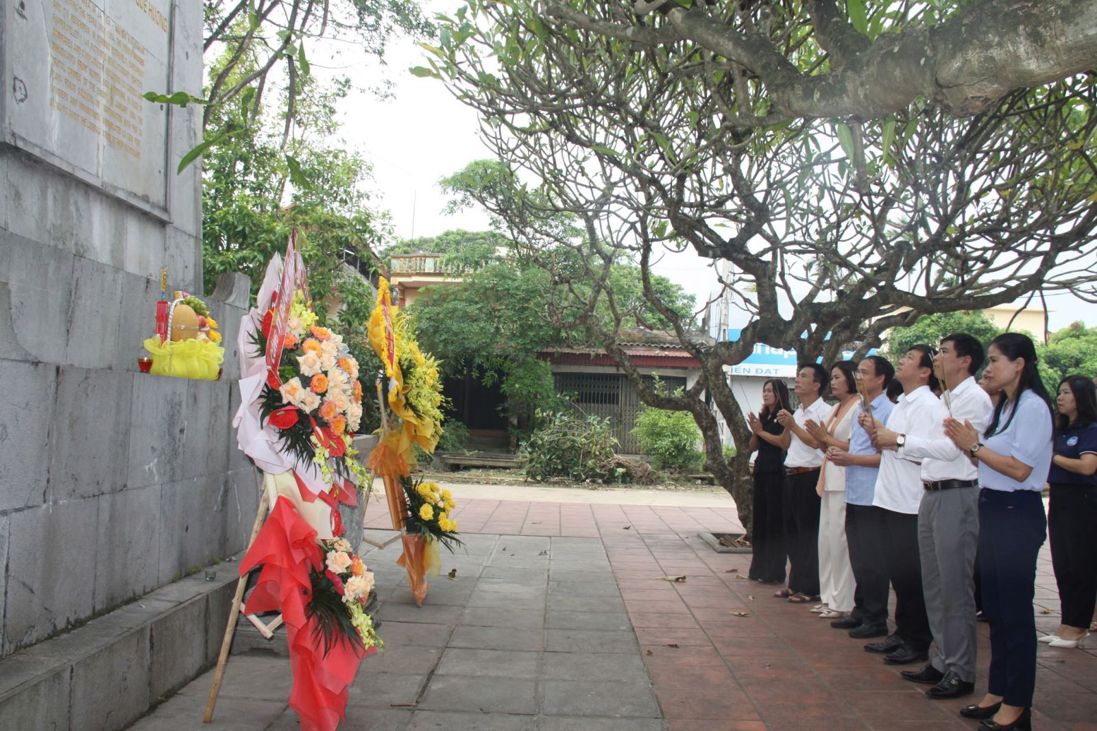 Đại biểu cùng các em học sinh dâng hương và nghe thuyết minh tại đền thờ Lưỡng quốc Trạng nguyên Tống Trân