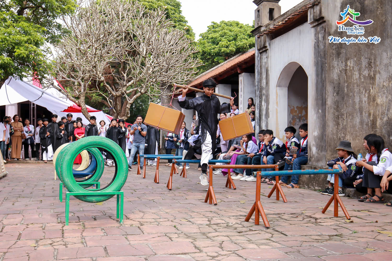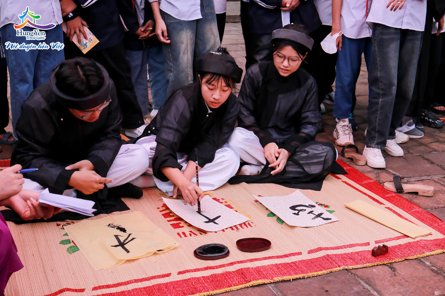 Bên cạnh đó, các em học sinh được tìm hiểu lịch sử Hưng Yên và trải nghiệm các trò chơi vô cùng ý nghĩa: gánh lều chõng đi thi, viết thư pháp.