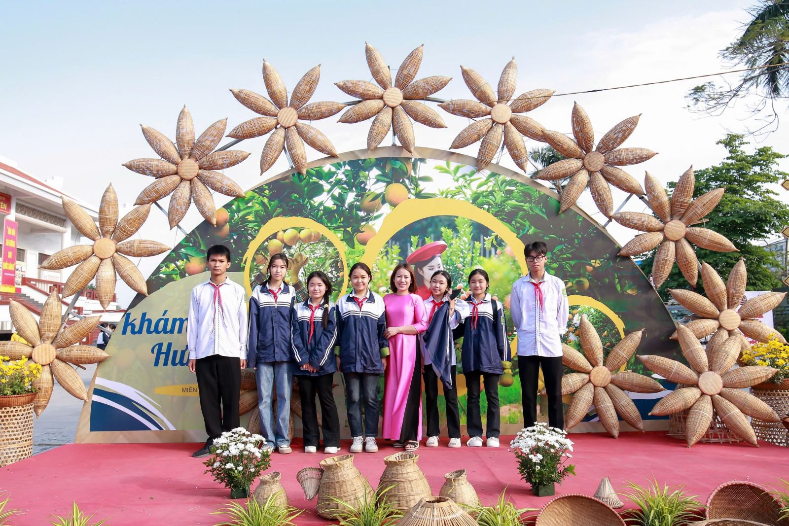 Cô và trò check in tại không gian trưng bày của Tuần Văn hóa, Thể thao, Du lịch Hưng Yên năm 2024