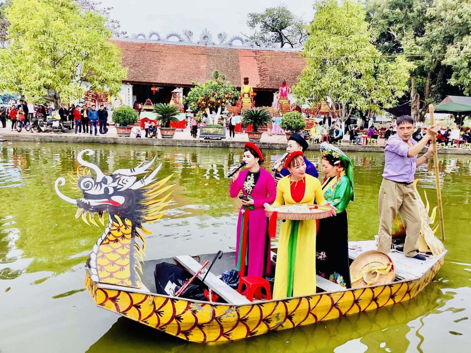 Đến với lễ hội, du khách còn được thưởng thức nghệ thuật hát trống quân - là di sản văn hóa phi vật thể quốc gia, một hình thức hát giao duyên từ lâu của người Việt ở vùng đồng bằng và trung du Bắc Bộ. Hát Trống quân dễ đi vào lòng người vì nhạc điệu uyển chuyển, tùy hứng, lên bổng xuống trầm theo không khí đêm hội. Lời hát mang đậm chất dân gian mà chủ yếu là lời từ ca dao, hát ví, hát đố, hoặc sử dụng các tích trò truyền thống.