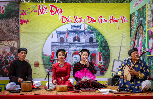 Quầy thông tin du lịch Hưng Yên không chỉ trưng bày và giới thiệu những ấn phẩm du lịch, đặc sản ẩm thực của tỉnh Hưng Yên. Bên cạnh đó, để quảng bá hiệu quả cho du lịch tỉnh nhà, những làn điệu trống quân, ca trù đằm thắm, mượt mà cũng được biểu diễn thu hút rất đông đảo du khách đến tìm hiểu, tham quan và thưởng thức.