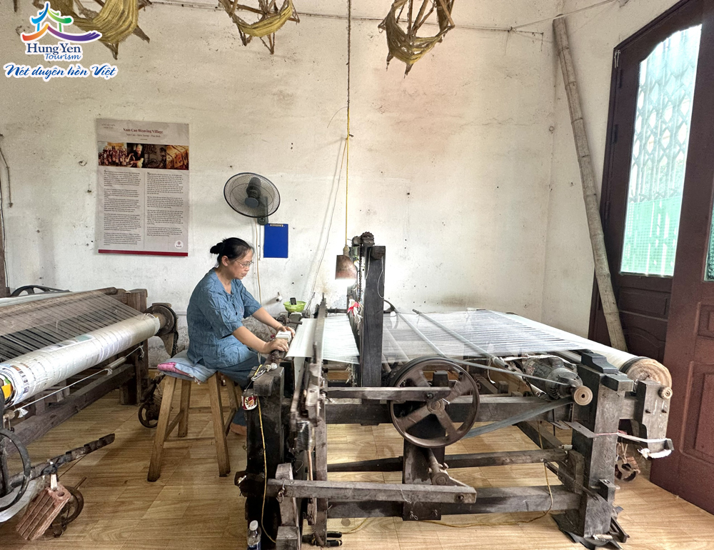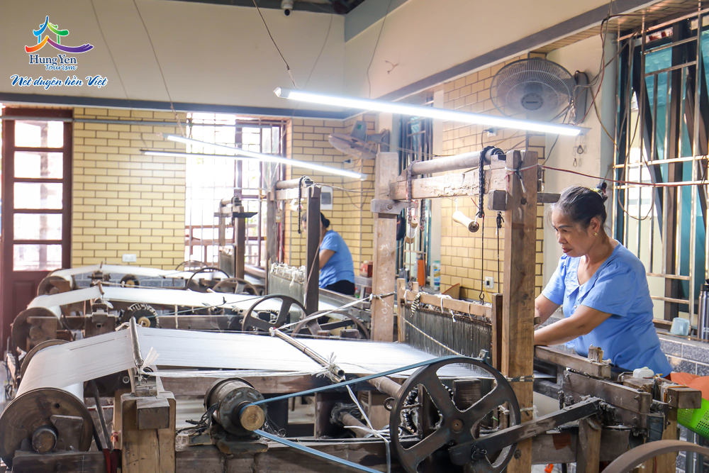 Đặt chân tới đây, tôi cảm nhận được khung cảnh yên bình và gần gũi. Bên mái hiên, dưới những nếp nhà xưa cũ là hình ảnh bà cụ ngồi kéo đũi, ông ngồi quay tơ, đánh ống, dệt vải…. Bên cạnh là sắc vàng, sắc trắng, sắc đỏ của nguyên liệu nhuộm vải trông như một bức tranh tuyệt đẹp.
