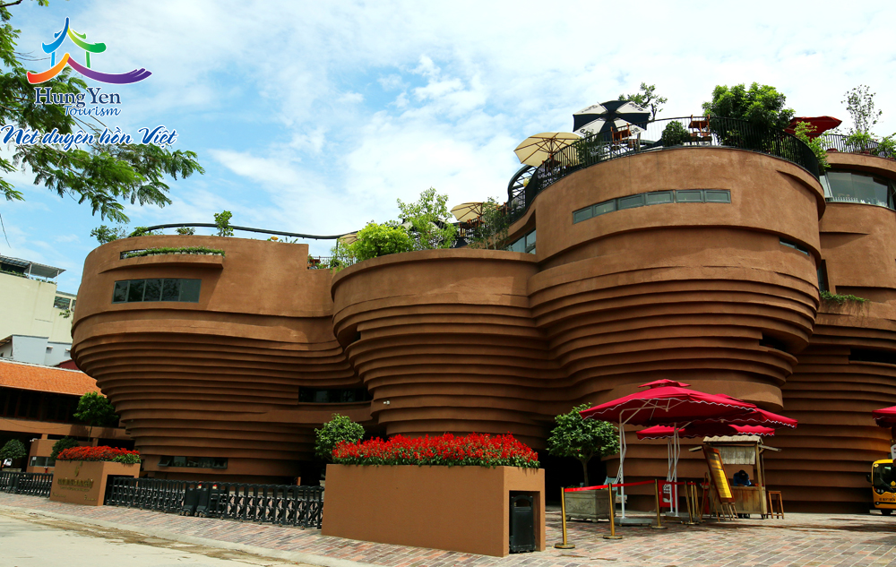 Kiến trúc của công trình lấy cảm hứng từ những hình ảnh thường ngày của nghề làm gốm. Từ những hình ảnh bàn xoay “vuốt gốm” truyền thống giao thoa với những mặt cong đa diện, chuyển động mềm mại và tự do đã tạo nên công trình độc đáo này. Toà Trung tâm diện tích 3.300 mét vuông, có 7 trụ xoay, kích thước và kiểu dáng không giống nhau tạo nên sự khác biệt rất riêng. Với thiết kế 5 tầng nổi, 1 tầng hầm và hai bên có hai dãy nhà 2 tầng 4 mái lợp ngói, tông màu chủ đạo là nâu đất, chính là màu của đất sét - nguyên liệu sản xuất gốm truyền thống và cũng là màu phù sa của dòng sông Hồng, bồi đắp nên sự trù phú.