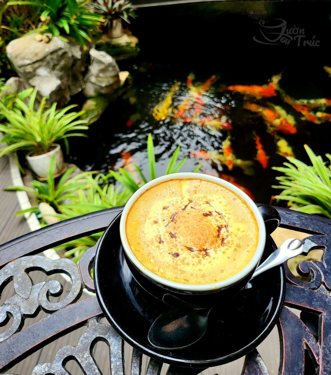 Bạn sẽ rất ngạc nhiên trước một không gian cafe hoàn toàn khác biệt tại Cafe - Phòng trà Vườn Trúc. Với sự kết hợp của phong cách cổ điển xen lẫn hiện đại, lấy tone màu gỗ dịu nhẹ làm chủ đạo xen lẫn tone màu nhã nhặn của đá đem đến một không gian gần gũi mà lại không kém phần sang trọng, tạo cảm giác ấm áp thoải mái ngay từ lần đầu tiên bước vào. Không gian ngoài trời cực chill, bạn có thể vừa thưởng thức café vừa ngắm những chú cá Koi bơi lội tung tăng dưới hồ. Dù là bất cứ góc nào, chỉ cần bạn giơ máy ảnh lên là đã có những tấm hình đẹp từng cen-ti-mét tại đây rồi đó!
