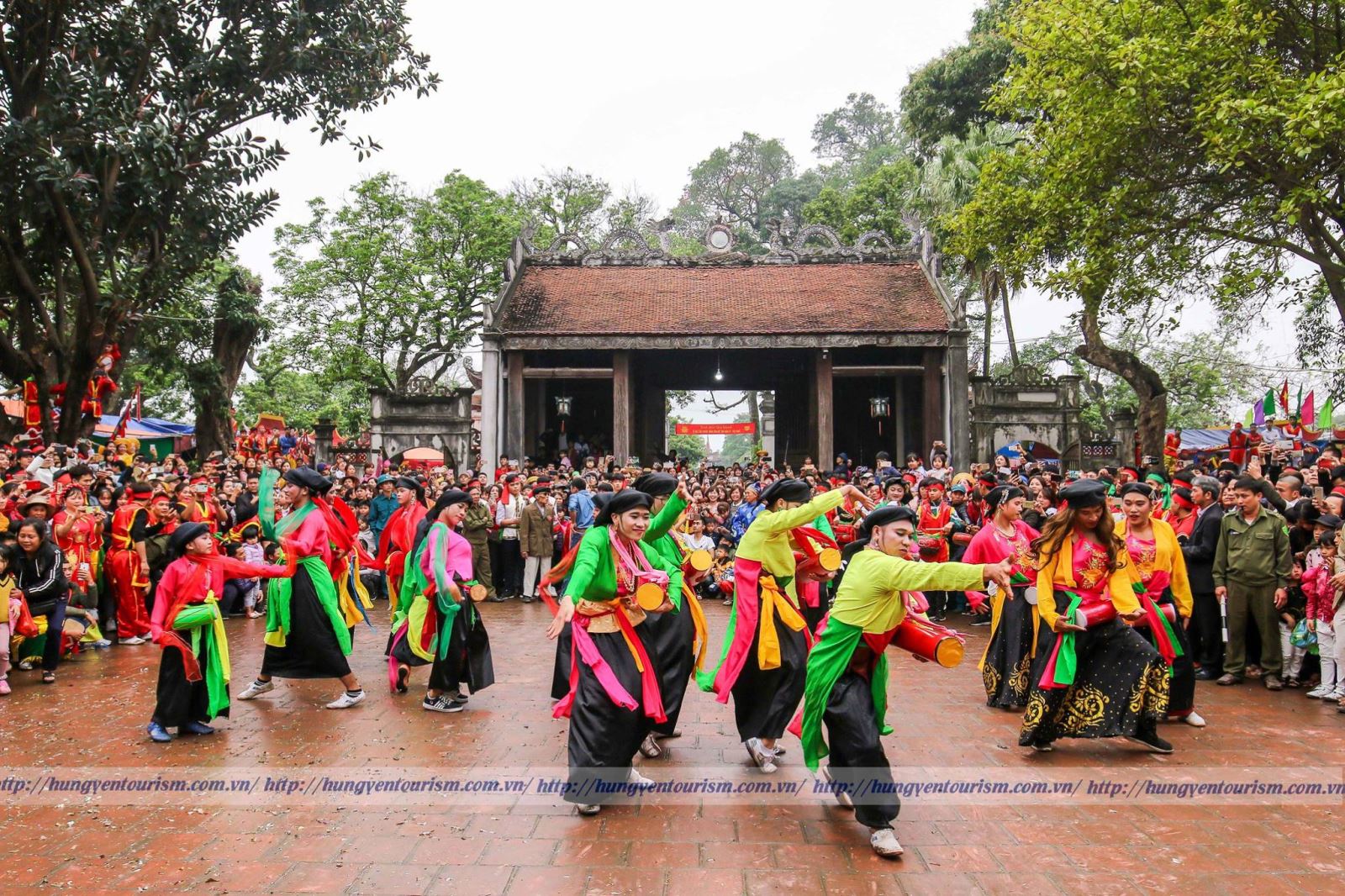 Trong ngày hội, các đĩ đánh bồng đi cùng đoàn rước từ các làng hội tụ về đền chính. Đoàn rước bề thế, long trọng, còn đĩ đánh bồng thì cợt nhả, đôi lúc gây trò “chọc ghẹo” mọi người. Các đĩ đánh bồng mặt hoa da phấn, vận áo tứ thân, váy đụp, khăn mỏ quạ, đeo trống cơm được sơn màu đỏ trước ngực, cài bông tai, đeo vòng, say sưa với những động tác mềm mại, linh hoạt theo nhịp trống hội.
