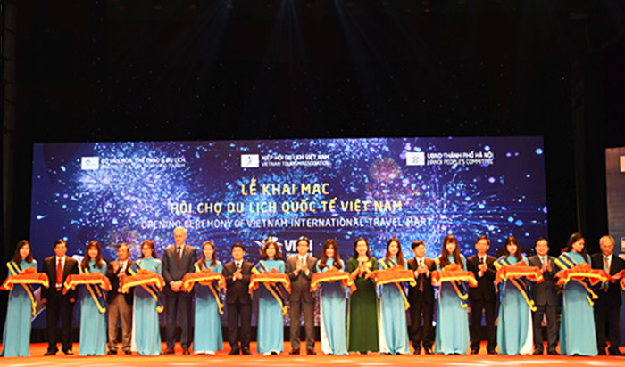 Các đại biểu cắt băng khai mạc hội chợ VITM 2018