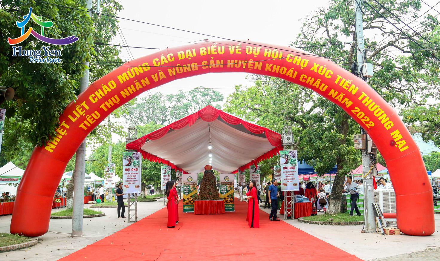 Tại đây, các gian hàng trưng bày, giới thiệu quảng bá giống nhãn đặc trưng của vùng đất Khoái Châu: nhãn miền Thiết, nhãn T6, T2, T1; các sản phẩm OCOP 4 sao của huyện như: nghệ, tinh bột nghệ Chí Tân, chuối tiêu hồng, gà Đông Tảo và các gian hàng cây cảnh, sản phẩm mây tre đan Liên Khê, làng nghề mộc Đại Tập,... thu hút đông đảo du khách tới tham quan và thưởng thức.