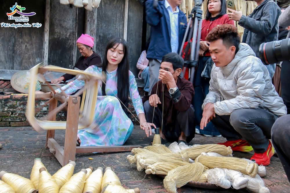Trải nghiệm quay tơ tại làng nghề dệt đũi Nam Cao