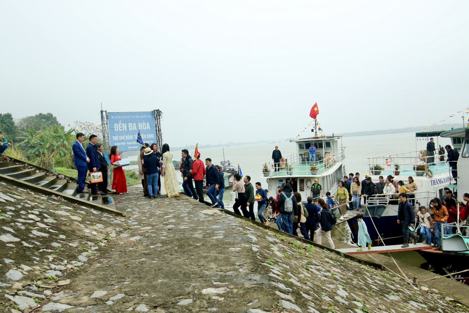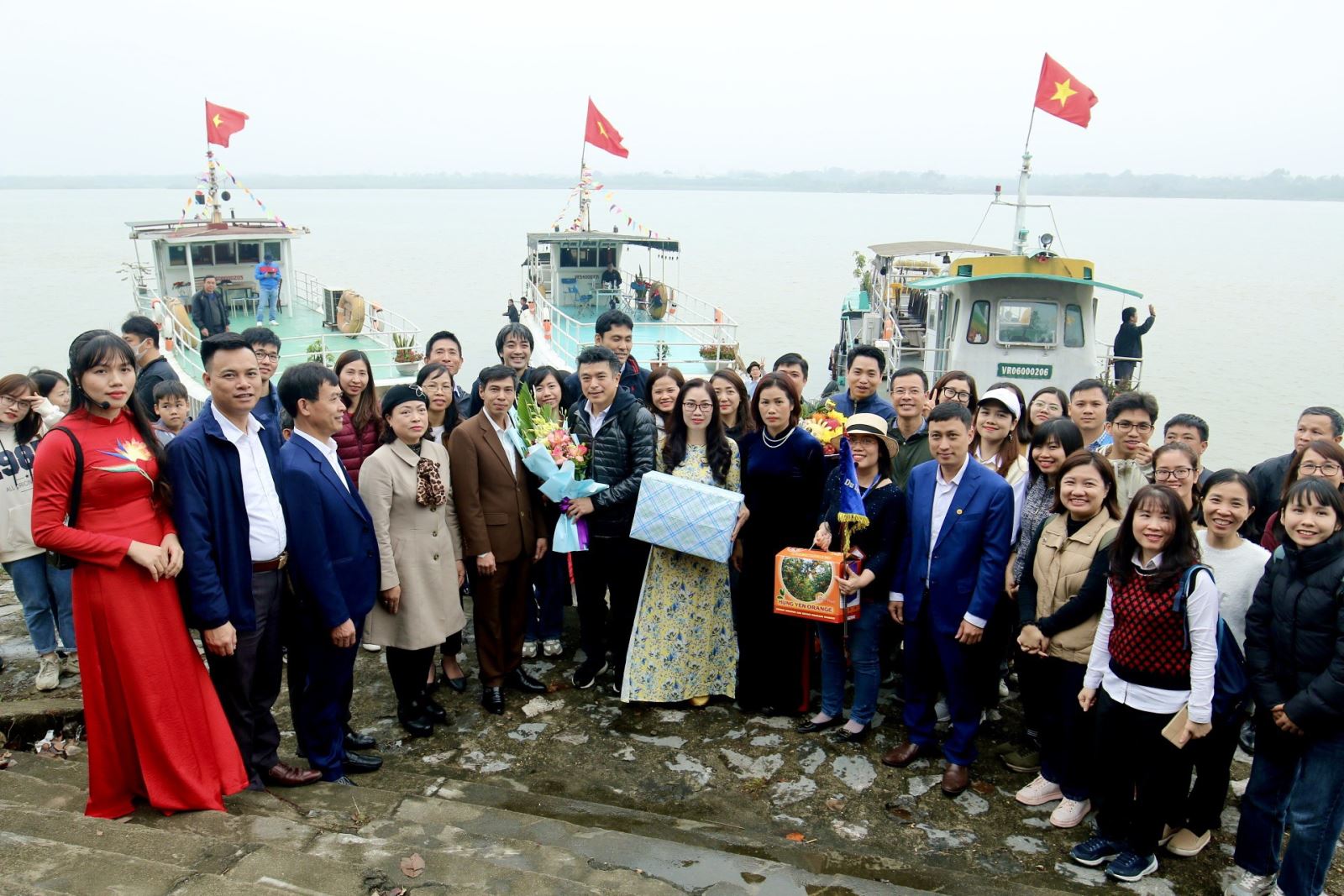 Trong không khí phấn khởi của những ngày đầu xuân mới, ông Phạm Văn Hiệu – Phó Giám đốc Sở Văn hóa, Thể thao và Du lịch; bà Nguyễn Thị Sen – GĐ Trung tâm TTXTDL tỉnh; lãnh đạo phòng văn hoá huyện Khoái Châu tặng hoa và trao những đặc sản Hưng Yên cho đoàn khách đã về với Hưng Yên. Đoàn du khách gồm 200 người, trong đó có cả khách quốc tế.