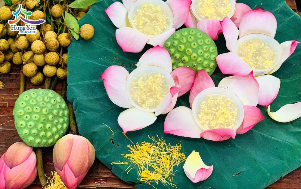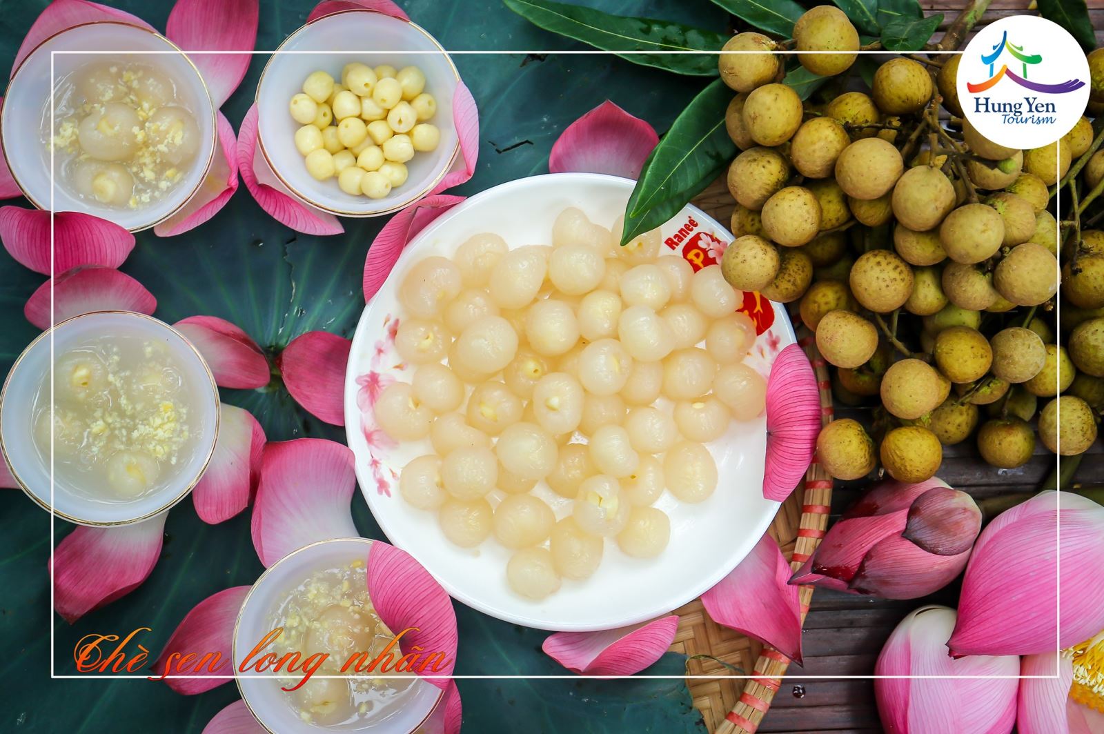Người Hưng Yên còn kết hợp giữa nhãn và sen là hai tạo vật quý giá của đất trời để chế biến nên món chè sen long nhãn. Dù không hẹn trước, nhãn và sen vẫn luôn chọn đúng thời điểm khoảnh khắc mùa hè trong năm để bừng hương, toả sắc thơm ngát. Nhãn lồng mã lụa, cùi dày ngọt đậm, thấm vào lòng người bằng hương thơm tinh tuý của lớp cùi trắng ngọc, ẩn trong đó hạt sen bùi, được hương sen ướp thơm sẽ tạo thành một bát chè thanh tao mà cao quý. Chỉ cần một lần thưởng thức thôi, hẳn sẽ nhớ mãi không quên hương vị ngọt ngào, tinh khiết ấy.
