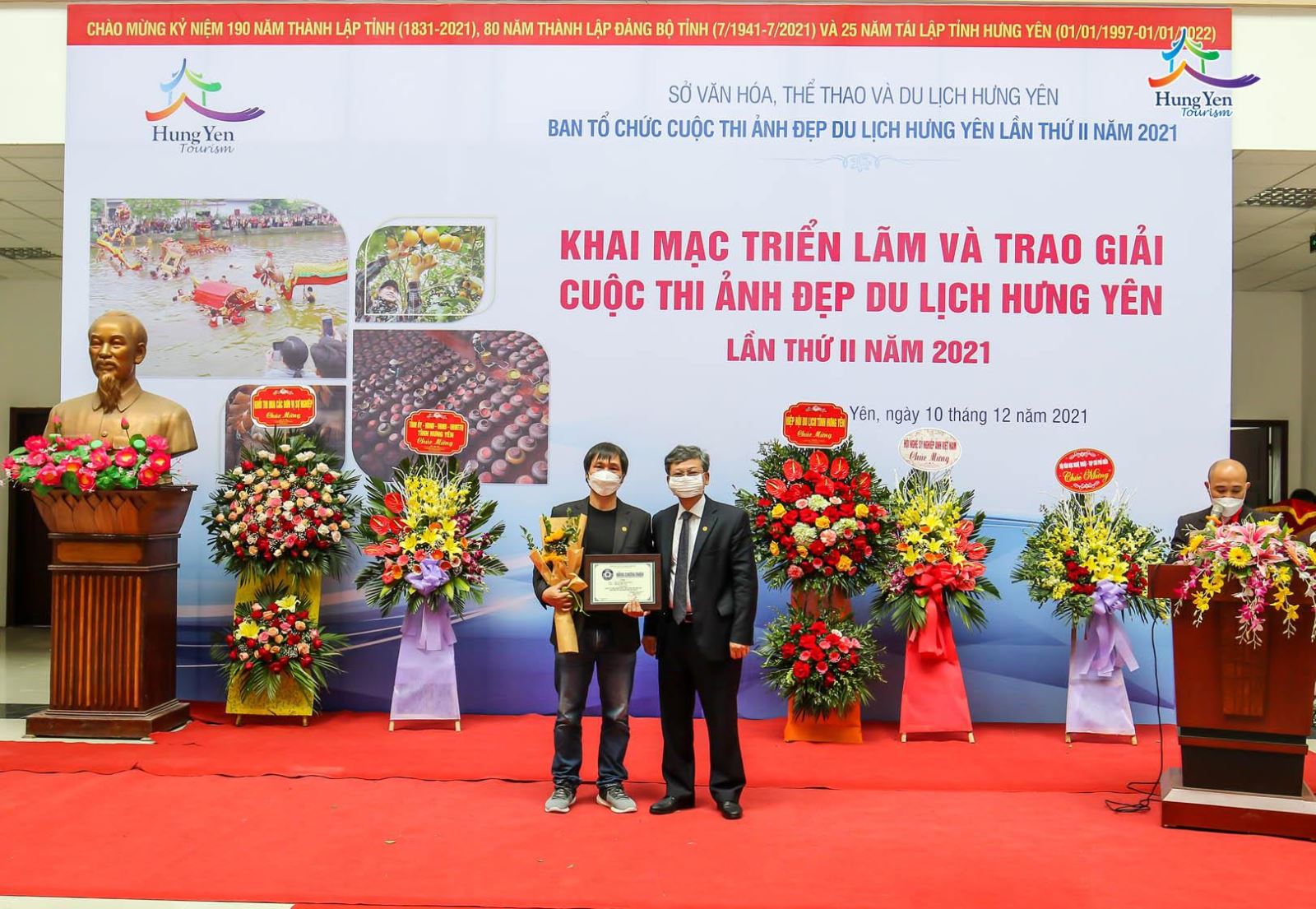 Ông Nguyễn Duy Hưng - Phó Chủ tịch UBND tỉnh, Trưởng ban chỉ đạo Phát triển Du lịch tỉnh trao tác phẩm đạt giải nhất cho tác giả Ngô Vi Quang