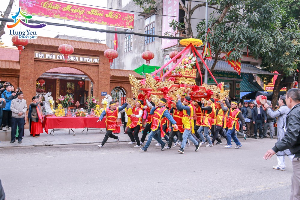 Cách đó không xa, bạn hãy ghé thăm đền Cửu Thiên Huyền Nữ, nằm ở khu phố Điện Biên II, Phường Phố Hiến. Đền là nơi tôn thờ Đức Cửu Thiên Huyền Nữ Chân Quân, là người giúp nhân dân trong lúc hoạn nạn, nguy nan nên được tôn làm thánh. Đền có kiến trúc kiểu chữ Công gồm 3 gian tiền tế, một gian ống muống và 3 gian hậu cung. Các hạng mục kết cấu tương đối đồng bộ, vững chắc.