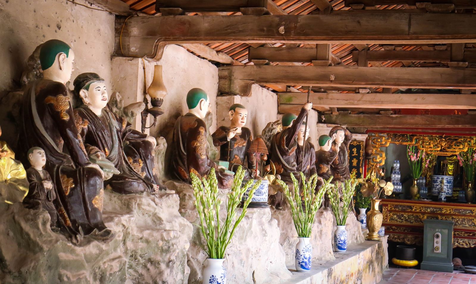 Điểm nhấn độc đáo của làng Nôm là chùa Nôm. Di tích có cảnh quan thoáng rộng và đẹp với kiến trúc nghệ thuật đặc sắc. Ngôi chùa cổ còn lưu giữ được 122 pho tượng cổ bằng đất có các kích cỡ lớn nhỏ khác nhau. Điều đáng ngạc nhiên là những bức tượng đất đã trải qua nhiều lần lũ lịch sử nhưng khi nước rút, các pho tượng vẫn không hề bị hư hại.