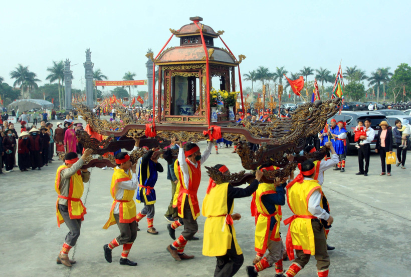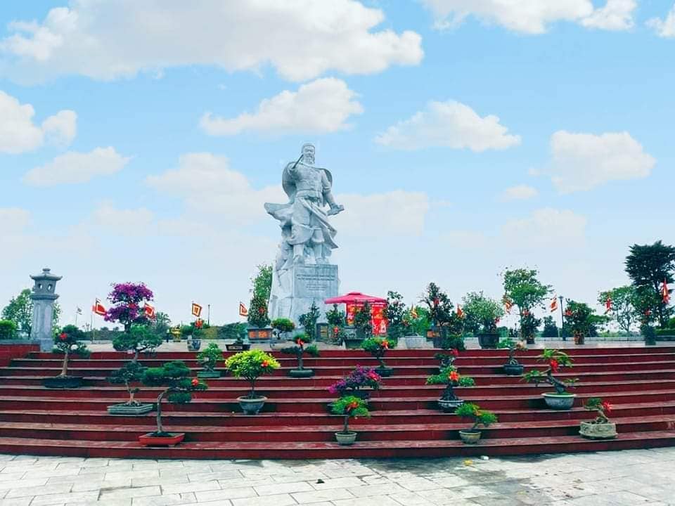 Ngay cạnh đó là công trình độc đáo thể hiện thần thái uy phong của Đức thánh Trần Hưng Đạo, tượng cao 13,2m chất liệu đá xanh nguyên khối.