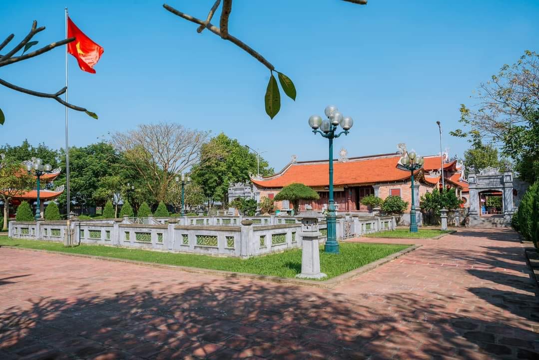 Công trình hiện tại được phục dựng năm 2005, hoàn thiện năm 2011. Tại đây là một khuôn viên rộng lớn được thiết kế hài hòa với cảnh quan xung quanh, tạo cảm giác gần gũi nhưng vẫn đầy tôn nghiêm. Ngôi đền là trung tâm của quần thể kiến trúc đặc sắc với những mái ngói rêu phong, những đầu đao uy nghiêm và bức tường được xây dựng bằng gạch nung thủ công. Nét nghệ thuật được thể hiện qua chạm khắc tinh xảo trên hệ thống cột gỗ, họa tiết trang trí trên mái, tường tạo nên một không gian đồ sộ, thanh thoát.