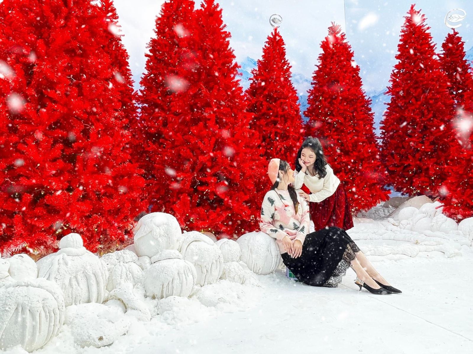 Trước bối cảnh rừng thông đỏ rực, giữa nền tuyết trắng muốt tạo nên không gian tuyệt đẹp khiến bao người si mê và thỏa thích check in.