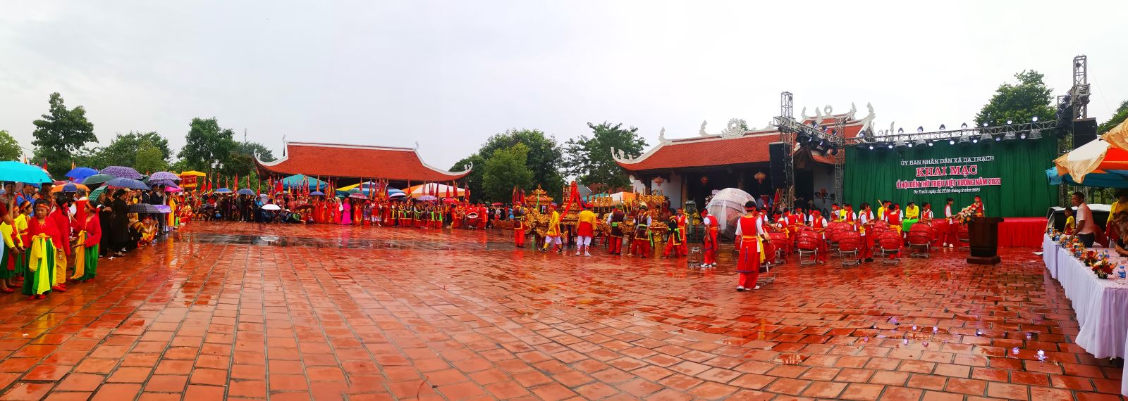 Đây là năm thứ hai xã Dạ Trạch tổ chức lễ hội đền thờ Triệu Việt Vương, tái hiện lại những hình ảnh của đội quân Triệu Việt Vương và căn cứ Dạ Trạch. Mở đầu là các nghi lễ trang trọng: rước kiệu “mũ đâu mâu” từ đền Triệu Việt Vương ra căn cứ đầm Dạ Trạch thực hiện nghi lễ rước nước; tế lễ; khai hội, múa lân, múa rồng,… Bên cạnh đó là phần hội với các trò chơi dân gian truyền thống như đi cầu kiều, đập niêu đất, múa đĩ đánh bồng, hát trống quân, thi bơi thuyền chải.