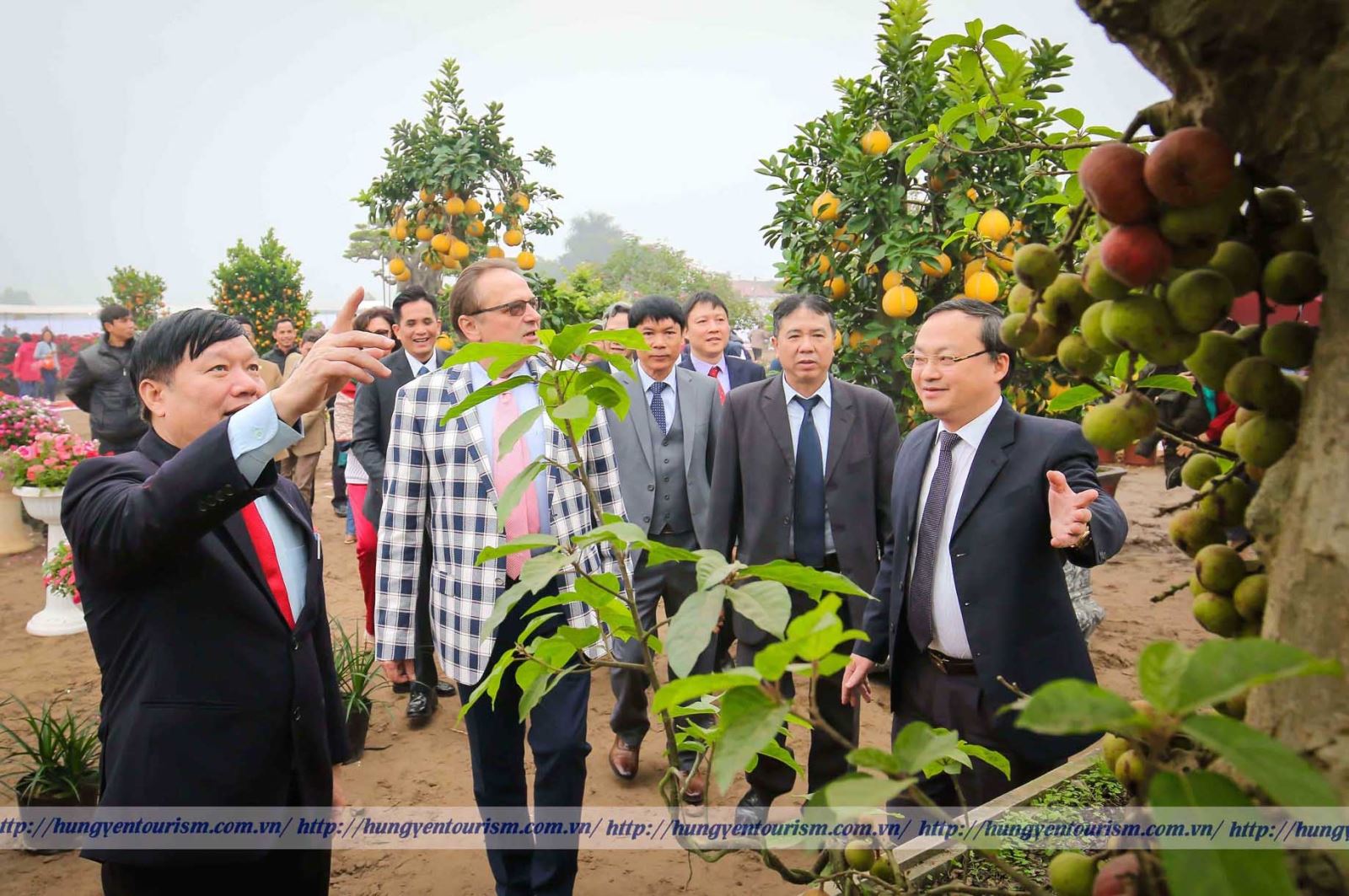 Lãnh đạo tỉnh Hưng Yên cùng các đại biểu tham quan lễ hội hoa Văn Giang năm 2019