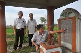 Hậu duệ đời thứ 21, 22 bên nhà bia trong Lăng mộ Nguyễn Trung Ngạn ở làng Thổ Hoàng (Ân Thi), ảnh: Báo HY