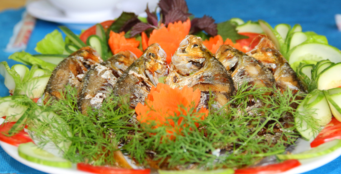 Sông Hồng chảy qua Hưng Yên với chiều dài khoảng 57 km, không chỉ là điều kiện thuận lợi cho sự phát triển nông nghiệp, công nghiệp, sinh hoạt, giao thông đường thủy mà còn cung cấp nguồn lợi thủy sản dồi dào như tôm, cua, cá… Trong số hàng trăm món ăn từ những loài thủy sản thì Hưng Yên nổi tiếng với những món được chế biến từ cá mòi, cá ngạnh, tôm và cá lành canh.