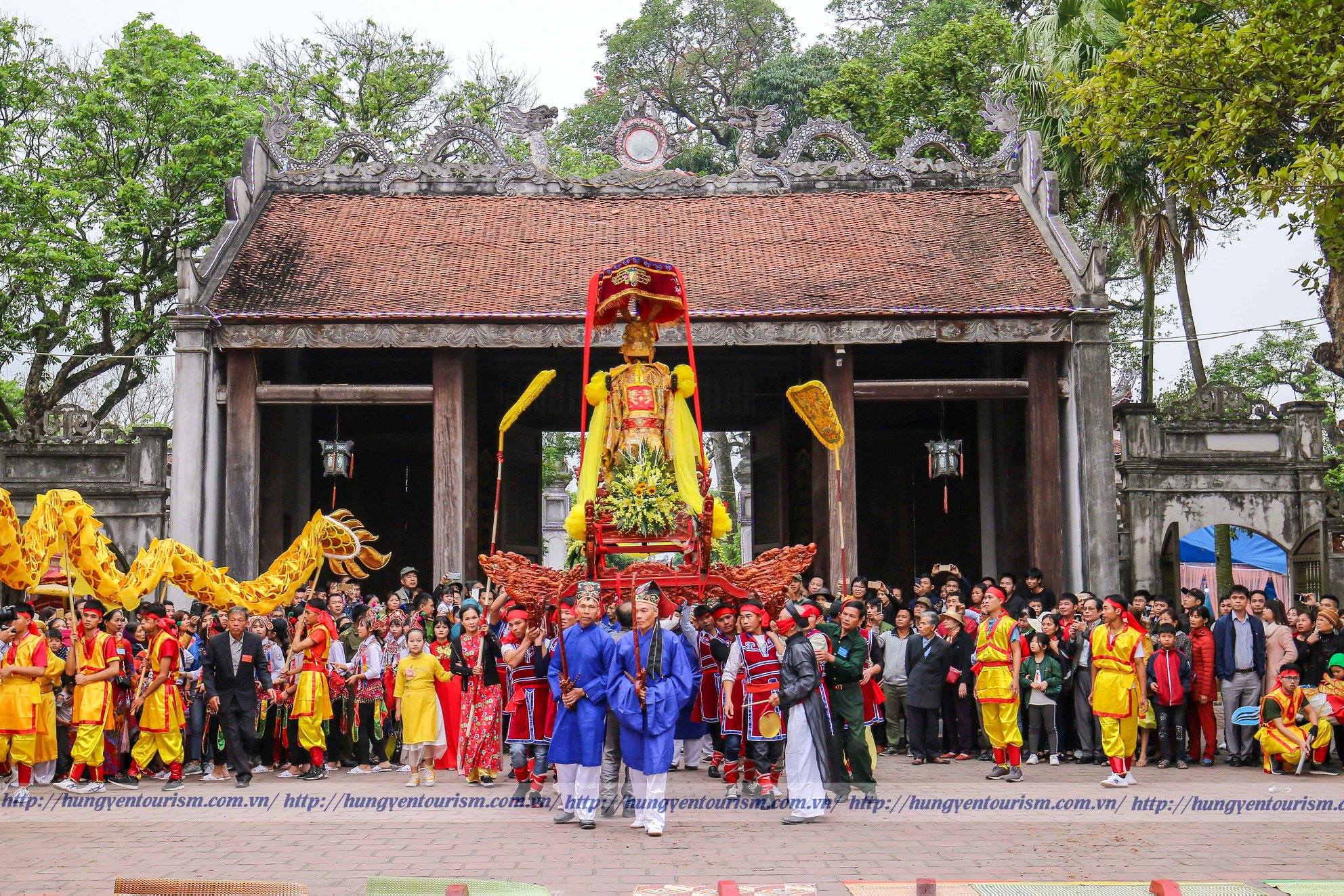Du khách tham quan đền Đa Hòa tại huyện Khoái Châu trên tuyến du lịch sông Hồng Loại hình du lịch văn hóa tâm linh gắn với tour du lịch sông Hồng và các tuyến đường bộ được phát triển trên cơ sở khai thác các giá trị di tích lịch sử – văn hóa gắn với văn minh lúa nước sông Hồng và sự hình thành, phát triển của tỉnh. Ngành du lịch của tỉnh đã chú trọng đẩy mạnh tổ chức các tour, tuyến điểm tham quan các di tích lịch sử – văn hóa, cụm di tích tiêu biểu như: Hà Nội – đền Đa Hòa, đền Dạ Trạch – Làng gốm Bát Tràng; Hà Nội – đền Đa Hòa, đền Dạ Trạch – Khu di tích quốc gia đặc biệt Phố Hiến; Khu di tích quốc gia đặc biệt Phố Hiến – đền Tống Trân – Di tích Quốc gia địa điểm Cây đa và đền La Tiến; chùa Thái Lạc – chùa Nôm – đền Ghênh…