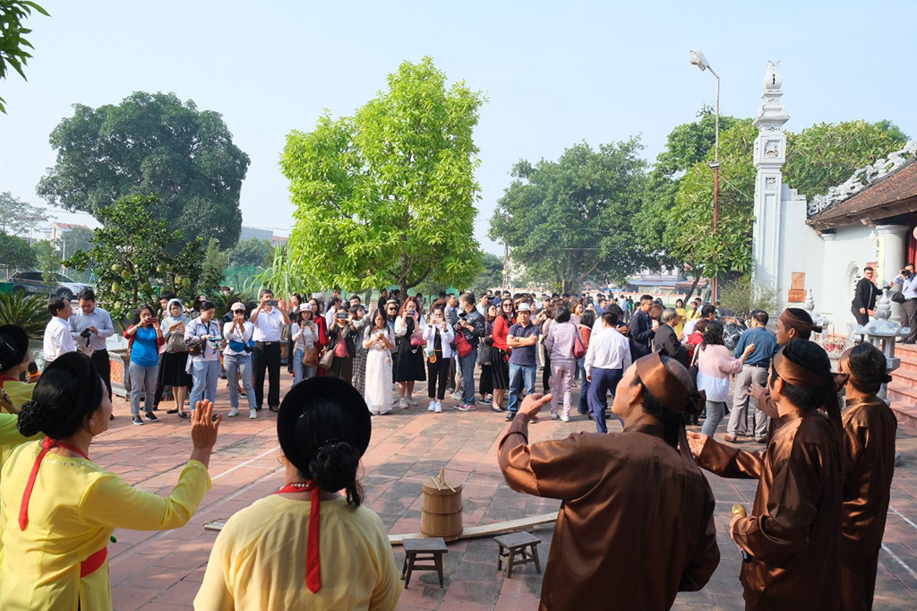 Du khách tham quan làng Nôm, xã Đại Đồng, huyện Văn Lâm Đồng chí Nguyễn Thị Sen, Giám đốc Trung tâm thông tin xúc tiến du lịch (Sở Văn hóa, Thể thao và Du lịch) cho biết: Dựa trên những tiềm năng và lợi thế về tài nguyên du lịch, tỉnh đã chú trọng đẩy mạnh khai thác các sản phẩm du lịch theo hướng các sản phẩm du lịch đặc thù. Đó là du lịch văn hóa tâm linh gắn với tour du lịch sông Hồng và các tuyến đường bộ; du lịch lễ hội dân gian truyền thống; du lịch sinh thái, nông nghiệp, cộng đồng; du lịch làng nghề.