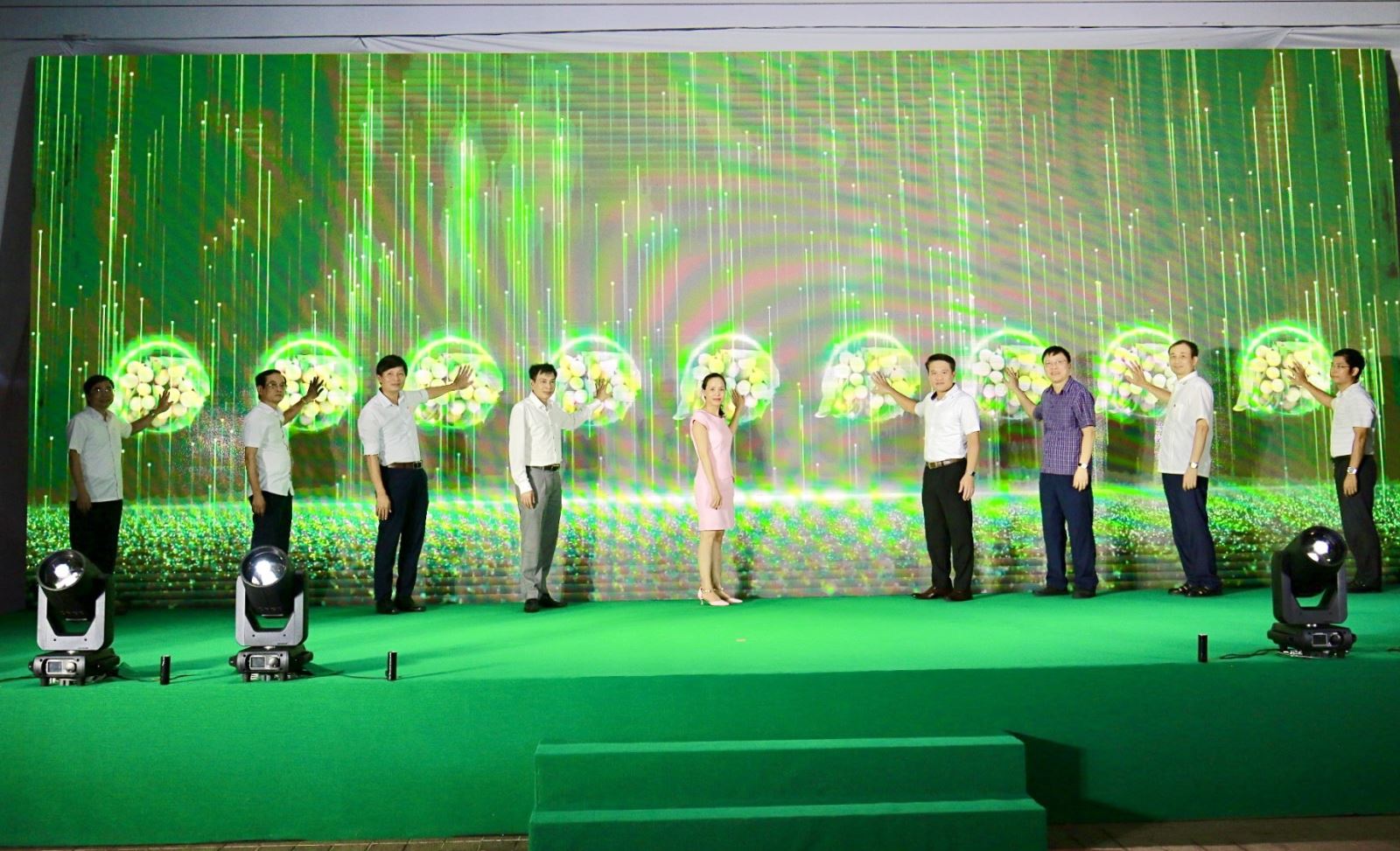 Các đại biểu nhấn nút Khai mạc Tuần lễ tôn vinh nhãn lồng Hưng Yên năm 2024