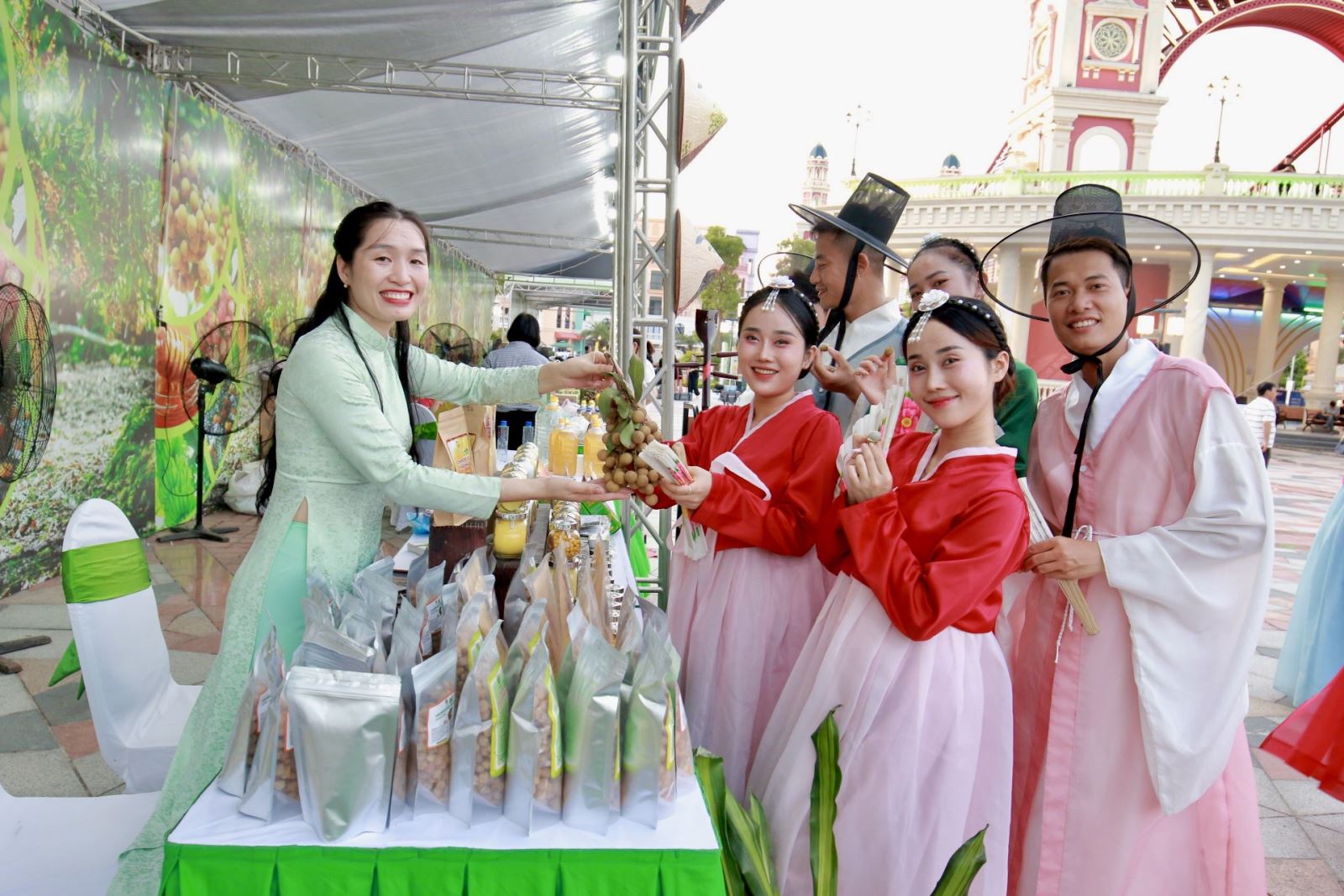 Du khách check in và thưởng thức đặc sản nhãn lồng tại gian trưng bày