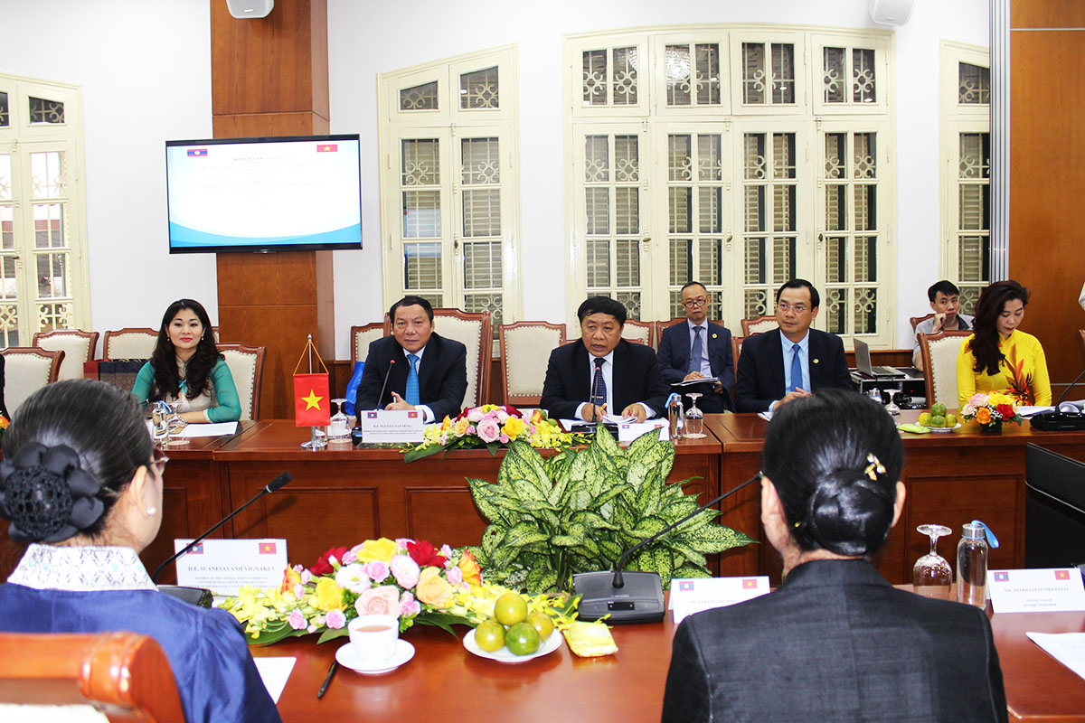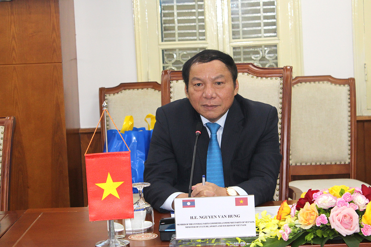 Bộ trưởng Nguyễn Văn Hùng cho biết, những ngày qua cùng với các hoạt động của đoàn đại biểu cấp cao của Đảng, Nhà nước Việt Nam và Lào, lãnh đạo hai Bộ đã cùng phối hợp chặt chẽ, tổ chức các hoạt động và gặt hái nhiều thành công trong Tuần Văn hóa Lào tổ chức tại Việt Nam cũng như Tuần Văn hóa Việt Nam tổ chức tại Lào. Buổi làm việc hôm nay giúp lãnh đạo hai Bộ nắm thêm tình hình hoạt động trong lĩnh vực quản lý nhà nước mà hai Bộ đang phụ trách, từ đó tăng cường hợp tác, thúc đẩy mối quan hệ đi vào chiều sâu và lên tầm cao mới.