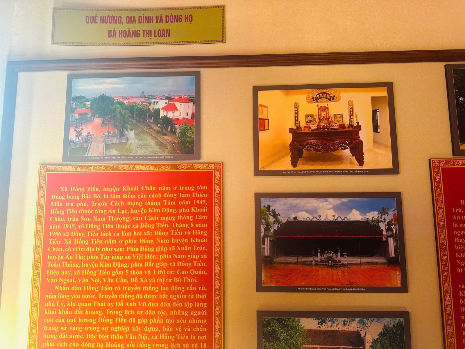 Đây, không chỉ là nơi thờ tự mà còn là địa chỉ lưu giữ nhiều hình ảnh, tài liệu, hiện vật có giá trị. Gồm các chủ đề: Quê hương, gia đình và dòng họ bà Hoàng Thị Loan; Các hoạt động tưởng niệm và tri ân bà Hoàng Thị Loan; Chủ tịch Hồ Chí Minh với Đảng bộ, chính quyền và nhân dân Hưng Yên.