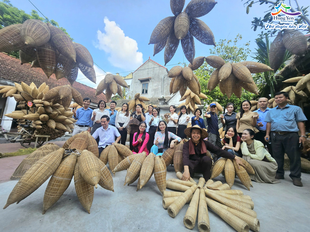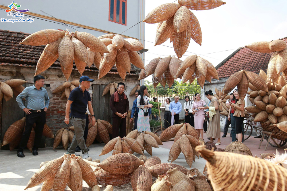 Đoàn khảo sát tại làng nghề đan đó truyền thống (xã Tân Hưng, tỉnh Hưng Yên)
